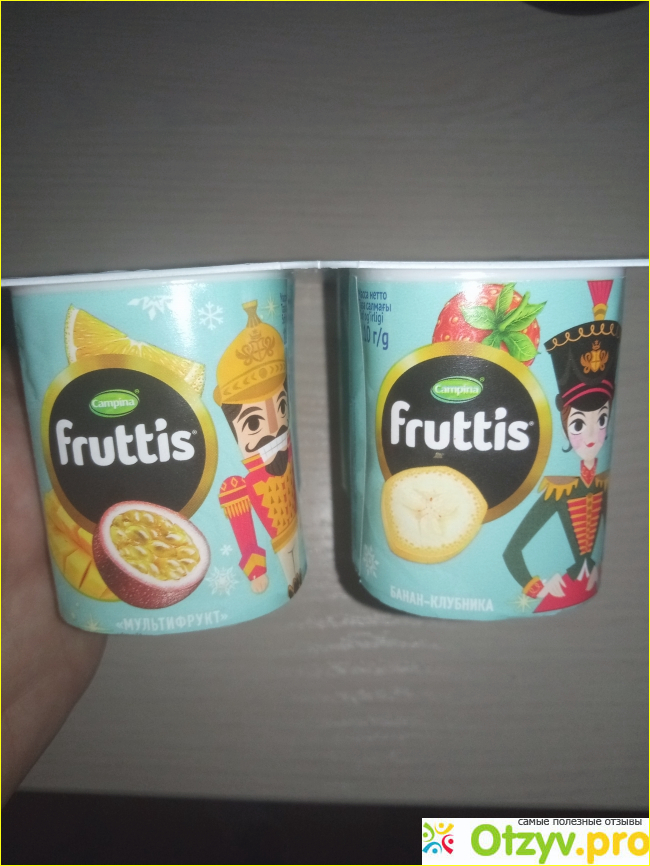 Самое привлекательное в йогурте, это его оформления, каждый родитель купит такой продукт молочный для своего ребенка, так как вкусы разные, картинки на каждой баночке Фруттиса оригинальные и индивидуальные, а еще у йогурта вкусные начинки, а именно манго, банан, клубника.