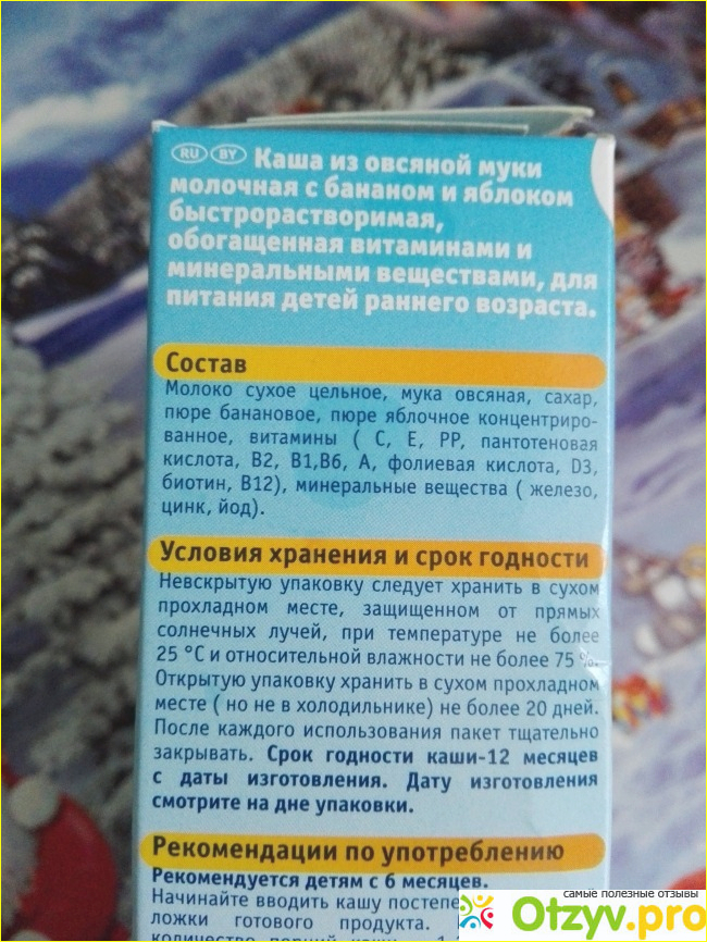 Состав, сами видите, ничего криминального, в нестле и хайнце и то бывает побольше всяких ингредиентов, а здесь молоко сухое, мука овсяная, сахар пюре из банана и яблока, витамины и минеральные вещества.