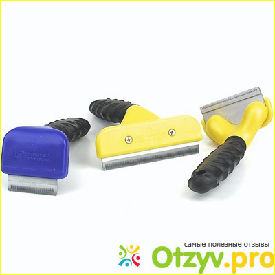 Фурминаторы еще бывают с кнопкой сверху, для более легкого снятия шерсти. У меня без кнопки и шерсть мне приходится снимать рукой. Но особого труда мне это не составляет.