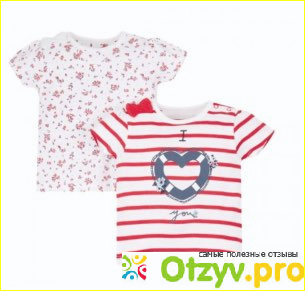Купила к лету дочке комплект из двух футболочек, понравился их дизайн в морском стиле. Одна из них с цветочками по всей футболочке, более нежная, и больше подходит на каждый день, а вторая, полосатая, выглядит более празднично и нарядно, особенно приглянулся в ней симпатичный маленький бантик на плече. У нас есть еще юбка и шорты в подобном морском стиле, что отлично сочетается с футболками.