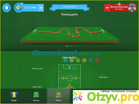Один из главных плюсов это необязательный донат. Я не потратил ни копейки на игру, но уже выиграл 17 чемпионатов и 10 кубков, при этом более 20 раз выполнил задачу на сезон. в целом игра интересна еще тем, что играешь против таких же настоящих людей-менеджеров, в редких случаях когда не хватает людей для начала чемпионата то некоторыми командами руководит Компьютер.