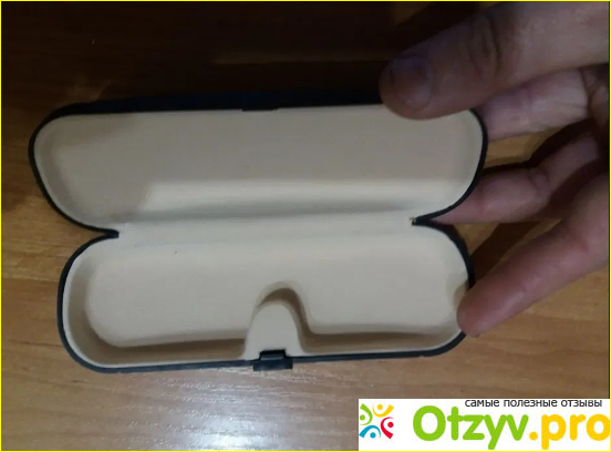 Если не до конца открыть его, то он закроется сам автоматически. Но это всё не критично. Сверху сделан из прочного, чёрного цвета пластика. Внутри белый материал похож на резину. При нажатии восстанавливает свою изначальную форму. Но это касается только внутренней белой обшивки. Крепления и механизмы глазу не видны, но внушают доверие прочности и упругости. Идеально подходит для очков с маленьким диаметром линз. Размер производитель не указал, но подходят к нему много видов очков. Размер его не очень большой. Очень качественный пластиковый футляр.