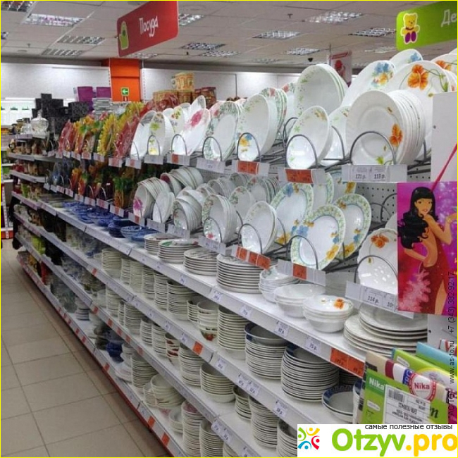 Отдел посуды и посудных принадлежностей очень привлекателен. Здесь есть кастрюли известных брендов и сковороды – от тефлоновых до современных керамических покрытий. Можно купить и чугунную посуду.
