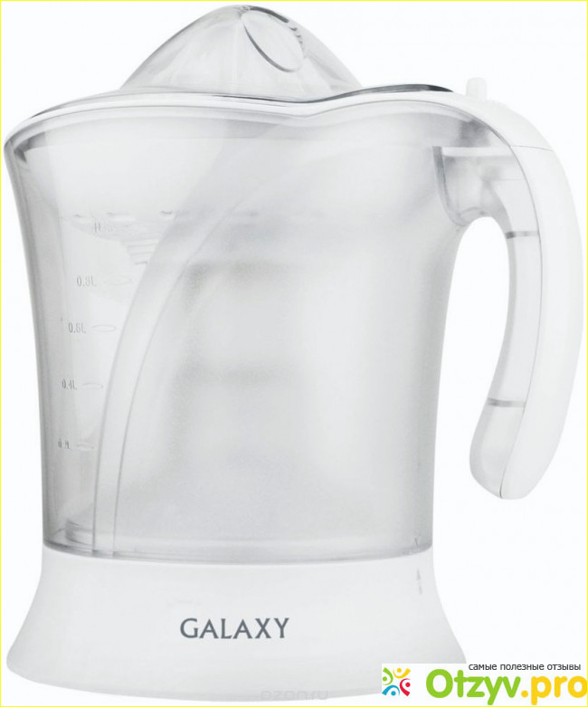 Итак, по своему внешнему виду соковыжималка напоминает красивый чайник. Отлично дополняет домашний и кухонный интерьер, вписываясь, буквально, хоть куда. Занимает места совершенно немного, достаточно компактна и удобна, никаких проблем по управлению нет - всё даётся достаточно легко и без каких-либо сложностей. Достаточно мощная, а ведь хорошая мощность является едва ли не главным залогом отличной работы такого прибора, как соковыжималка. Здесь 40ВТ вполне хватает, чтобы превратить любой апельсин или лимон в сок. Объем контейнера - целый литр, что позволяет сразу же сделать большое количество сока. При этом какого-то особого чрезмерного количества никогда не бывает, да и потом - цитрусовый сок особенно полезен только в первые 5-10 минут после своего приготовления, затем он начинает терять свои полезные свойства. Так что литр - оптимальная для меня ёмкость. Этого не достаточно много, чтобы пить и лопнуть, но и совсем даже не мало, чтобы успеть лишь попробовать на вкус. Так же здесь есть шкала уровня сока, что позволяет достаточно быстро и легко определять, сколько напитка осталось. Очень удобно при соблюдении каких-либо диет, когда нужно с точностью знать количество миллилитров, которые стоит выпить. Несмотря на то, что цвет у прибора чистейше белый, соковыжималка совсем не страдает проблемой быстрой марки. А если же то происходит - то грязь с поверхности убирается и стирается достаточно легко и без всяческих проблем. Сначала меня немного напрягало, что соковыжималка сделана только для конкретного направления и приспособлена, якобы, для цитрусовых. Конечно сделать с её помощью яблочный, грушевый или морковный сок действительно станет довольно проблематично, но универсальный конус для отжима, который есть в этой соковыжималке, позволяет готовить и морс из спелых ягод, мусс и даже некоторые другие напитки. Прибор достаточно легко хранить и мыть, никаких проблем с этим не возникает, время экономится, что не может не радовать. Достаточно мало шумит, кстати, так что если кому-то захочется полакомиться напитком в ночное время суток - покой и сон жильцов вы даже не нарушите.