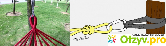 В гамаке планка прочная и толстая, выполнена из натурального дерева. Очень прочная крепёжная основа. Она состоит из 10 сдвоенных канатиков, каждый из которых имеет диаметр 5 мм. Они сливаются в толстую петлю оплетку. Именно это петля позволяет прикрепить гамак.