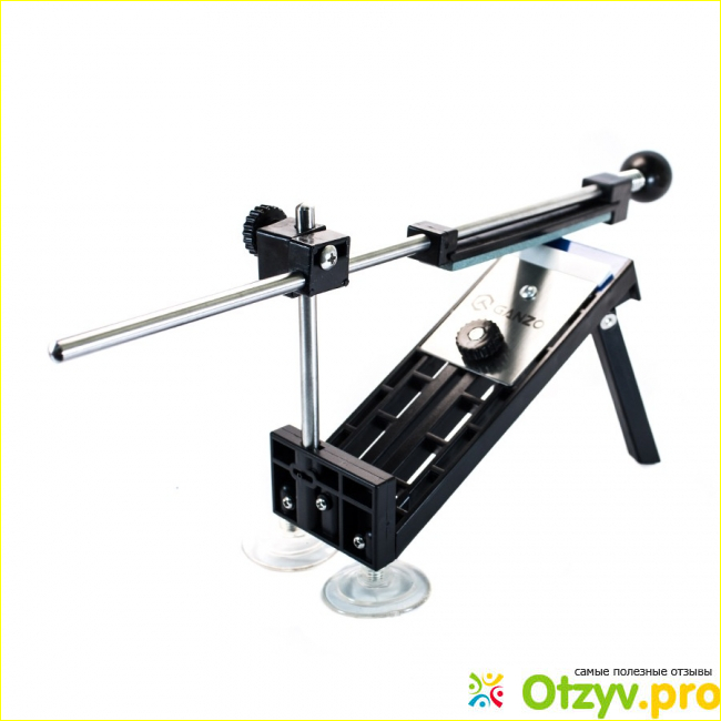 Чтобы выполнить действия по заточке, нужно установить станок на поверхность, где вы будете работать и зафиксировать с помощью присосок, после выставить направляющую с необходимым углом и последнее поставить камень с нужной вам зернистостью.