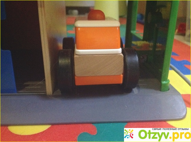 Автоэвакуатор разборный, также состоит из пластиковых и деревянных деталей. Плюс у машинки есть крутящиеся черные пластиковые колесики, так что машинка спокойно передвигается по полу. Машинка сделана также просто, ярко, качественно и безопасно. Ребенку очень нравится разбирать и собирать ее (САМОЕ ГЛАВНОЕ в том, что двухлетний ребенок ее без проблем и без посторонней помощи (самостоятельно) разбирает и собирает.