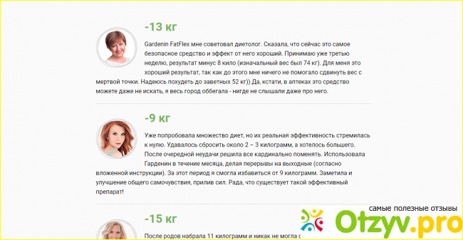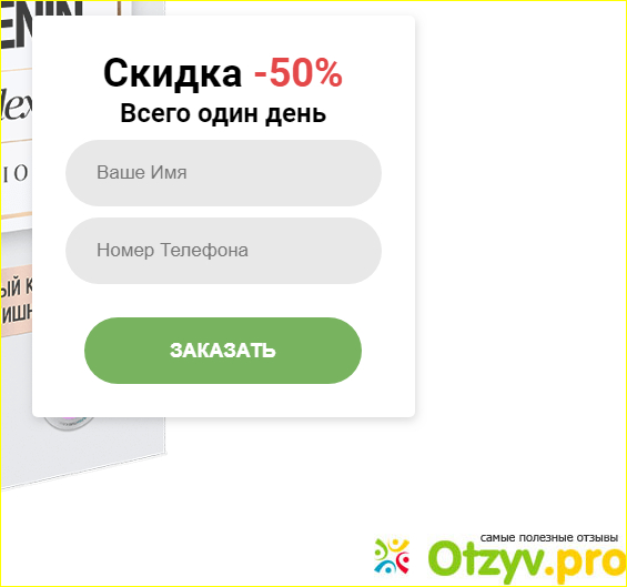 Сайт – одностраничный, т. е. вся информация о продукте и форма для заказа – всё в одном месте. Дизайн простой и состоит, в основном из отзывов и информации, прославляющей данное средство для снижения веса.