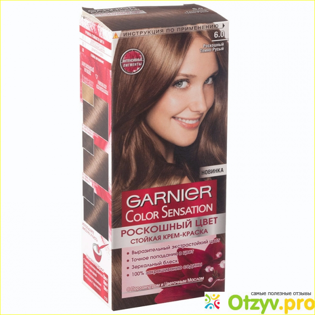 Эта краска для волос давно пользуется успехом и совершенно не странно. Она не менее популярна, чем старший собрат Loreal Paris, и не уступает никакому бренду красок совершенно ни чем. Темно-русый оттенок 6.0 представлен у Garnier в трех разных линейках: Color&Shine - безаммиачная крем-краска с экстрактами клюквы и арганы. Color Sensation - линия с перламутром и цветочным маслом, передающая истинный и точный цвет. И соответственно качественный вариант Olia - обогащена маслами, дает классический натуральный темный русый. Эта краска особенная тем, что она не портит волосы, а напротив питает их, ведь в состав данной краски совершенно не входит химикатов, и соответственно нет аммиака. Работает краска за счет того, что у нее достаточно сильный пигмент, способный без помощи аммиака, проникать глубоко в структуру волосинки, обеспечивая ей невероятно красивое сияние и конечно же насыщенный цвет на долгий период времени.