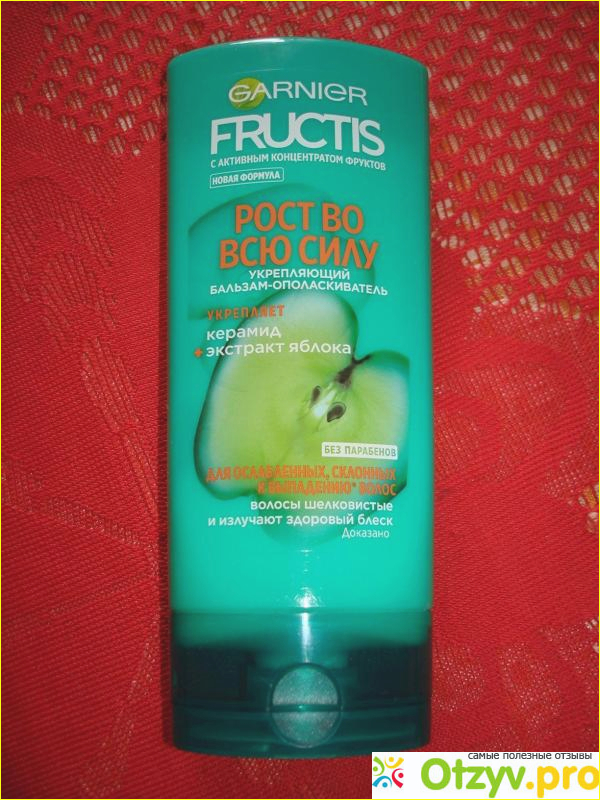 Как только по телевизору стали показывать рекламу тогда еще новой линейки Гарниер Фруктис "Рост во всю силу", я решила купить и испробовать в действии. Я знаю, что шампунь - это всего лишь моющее средство, которое промывает наши волосы от загрязнений, к своему обычному средству, купила бальзам.
