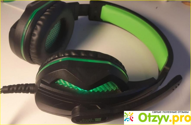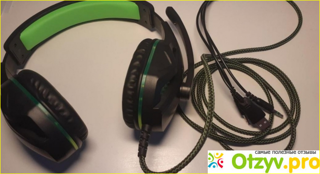 На эти проводные наушники даётся гарантия 1 год. Изготовлены они в Китае. Подключаются к компьютеру только с помощью провода, и других подключений не имеют. Позиционируется модель, как игровая гарнитура с полноразмерными охватывающими наушниками. Наушники выполнены по звуковой схеме 2.0. Имеется подвижный микрофон. Выглядят наушники симпатично, выполнены из черного пластика с зелёными вставками. Имеется и подсветка, также зелёного света. Амбрашуры мягкие, выполнены из эко-кожи, оголовье может регулироваться под размер головы. Мембрана имеет диаметр излучателя 50 мм. Минимально воспроизводимые частоты достигают 20 гигагерц. Максимальные 20000 гигагерц. Чувствительность наушников составляет 105 децибел. На каждом наушнике имеется 1 динамический излучатель. Микрофон чувствительный -48 дБ, располагается на одном из наушников, подвижный. Подсоединяется к компьютеру путём двух соединений, jack 3.5 мм, и USB-штекера. Кабель не отсоединяется. Длина кабеля составляет 2 м. 10 см. Кабель имеет тканевую оплётку, которая оберегает от перетирания и перекручивания. Весят наушники 475 грамм. В комплекте поставки вместе с наушниками идёт только документация.