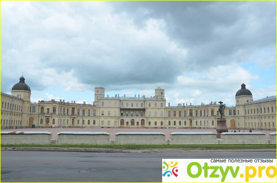 Позади находится Гатчинский дворец. Дворец безумно красивый и уникальный, это единственный дворец в окрестностях Санкт-Петербурга, который построен в таком стиле и напоминает средневековый замок.