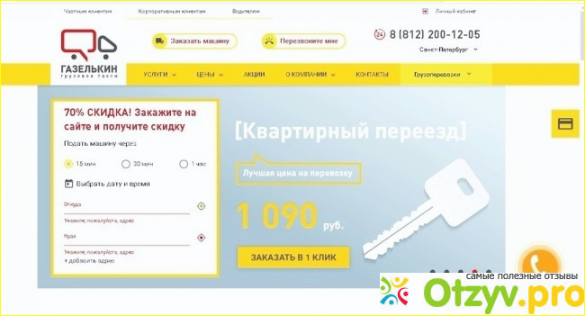 Я сделала заказ в городе Санкт-Петербурге по телефону: 8 (812) 200-12-05, адрес Грузового такси "Газелькин" г. Санкт-Петербург, ул.