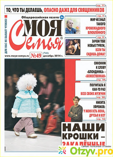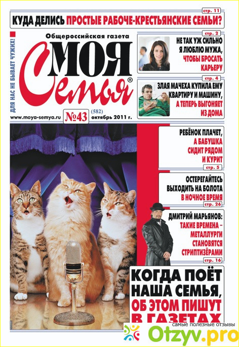 Газету "Моя семья" я полюбила совершенно случайно - была в гостях у сестры, и пока она занималась своими делами я взяла эту газетку в руки и полистала. Понравились мне рубрики, советы психолога и статьи. Сестра подтвердила, что газета хорошая - стоит дешево, а почитать есть много чего.
