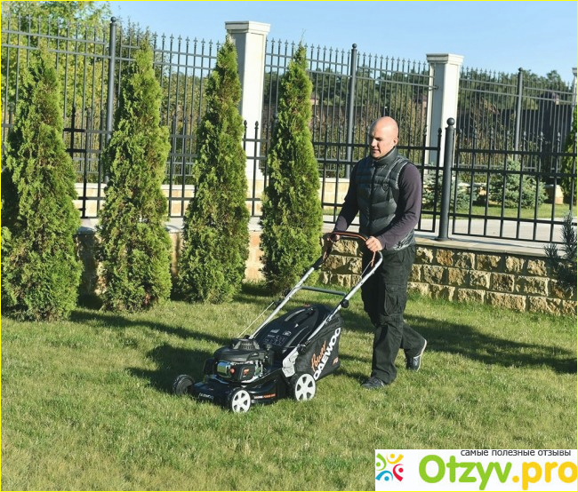 Выбирал изначально между электрической и бензиновой. Дэу посоветовали соседи, но у них лужайка небольшая, косят триммером. У нас же участок гораздо больше, плюс встречаются неровности и трава другая (есть достаточно жесткие сорняки, так как специально газон не засеивали, что растет то и стрижем).