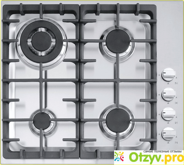 Моя панель очень удобная с четырьмя конфорками разной величины, одна самая большая с тройным контуром горения,