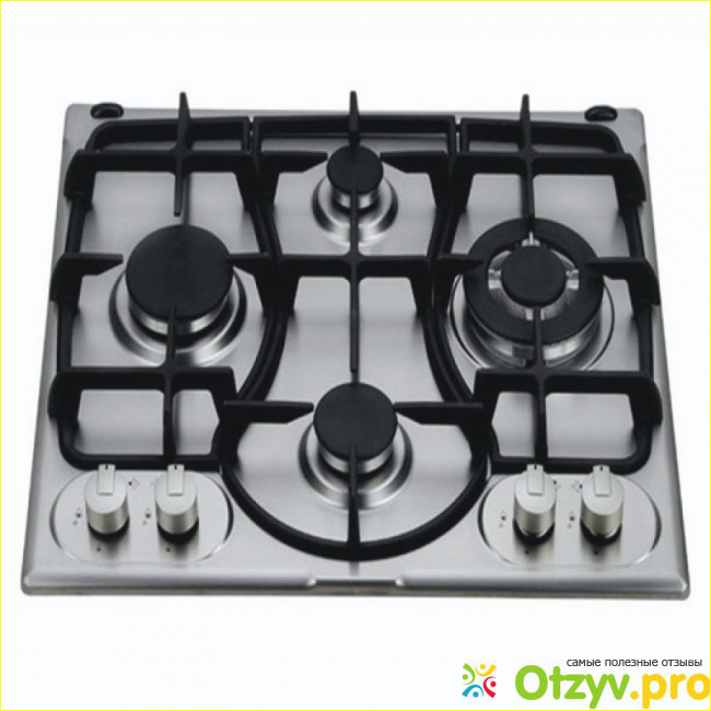 Покупалась данная плита нами где-то года три назад и стоила в пределах 15 тысяч рублей. Установка данной панели независимая, что очень удобно, панель имеет четыре конфорки с газ-контролем, они не индукционные, имеется электроподжиг, материал панели – нержавеющая сталь серебристого цвета. Размеры данной панели вполне стандартные: ширина: 60.4см, глубина: 52см, что позволяет установить её в кухне любого размера. Сама панель легко моется, отпечатки пальцев не оставляет. Варочная панель имеет не совсем стандартное расположение конфорок (не классическое), это видно на фото. Казалось бы, что такое расположение не совсем удобное, а на самом деле оказалось наоборот, к такому расположению конфорок привыкаешь быстро, но получается так, что боковыми конфорками пользуешься чаще, ну а центральной пореже. Для управления варочной панелью имеются специальные ручки, под каждой ручкой имеется рисунок, указывающий к какой конфорке она относится.