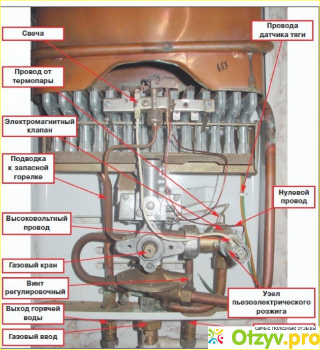 Чтобы не было никакой накипи, которая снижает эксплуатационный срок газовой колонки, производители позаботились о том, чтобы теплообменник был выполнен из сплава металла с хорошей устойчивостью к температурам.