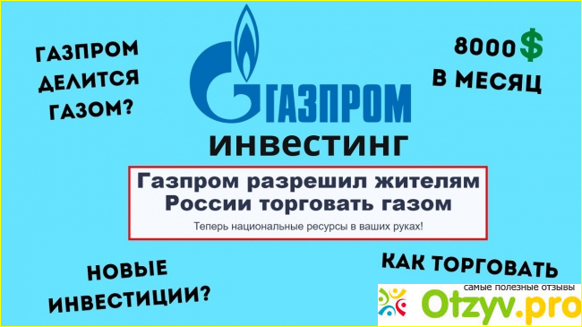 Итак, что получается, а получается то, что официальный сайт Газпрома отвергает все слухи об этой информации “Газпром разрешил торговать газом обычным людям”. Под этой надписью можно найти и рекламное видео от Газпром Инвест, в котором обещают быстрые инвестиции от быстрых вложений. Якобы если инвестировать 150 долларов, то в течение одной недели уже можно будет вывести прибыль в 220 долларов.