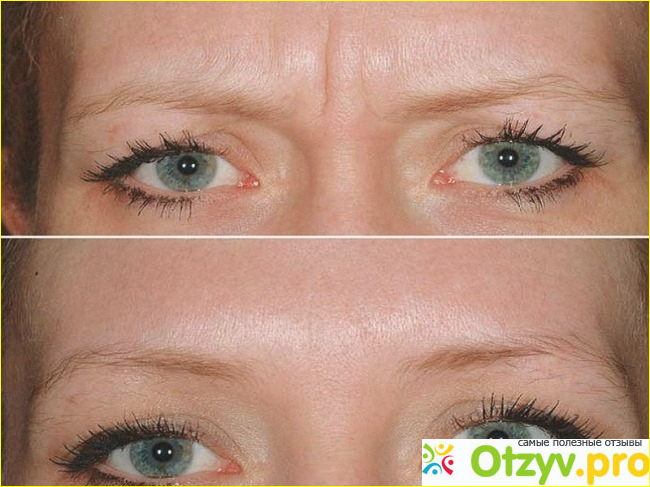Удаления складок на лбу и между бровями.