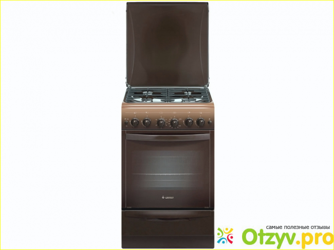 Плита выглядит очень надежно, имеет эмалированное покрытие, снабжена четырьмя конфорками и большим духовым шкафом, есть функция контроля утечки газа. Непосредственным достоинством считаю, наличие ящика для посуды и термометр для определения температуры в духовом шкафу.
