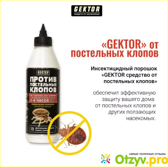 Когда, наконец, измученная я приобрела этот самый порошок Гектор от клопов — в благополучный исход дела я уже не верила. Нанесла средство, прошел денек-другой и вдруг... все стихло. Одна ночь, потом вторая — без клопов, никто не кусал. Следов от них не было, а через денек я начала находить высушенные трупики этих мелких тварей. Действует!