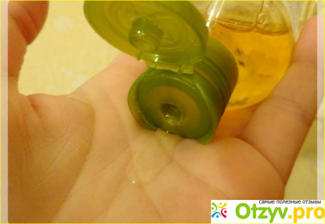 Крышка имеет фирменный логотип и яркий зеленый цвет. Крышка является откидной, но при необходимости её так же можно открутить. С помощью дозатора, который находится на крышке в виде отверстия, можно контролировать расход продукта. Для того, что бы принять водные процедуры необходимо всего несколько капель, которые обеспечат не только душистую пену, но и отличное настроение.