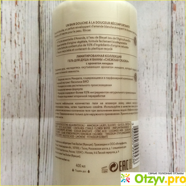 При очередной покупке любимых средств от марки Yves Rocher в подарок мне достался лимитированный гель для душа и ванны, которым я пользуюсь с большим удовольствием и очень довольна, что марка делает такие хорошие подарки за покупки в бутиках или через интернет – магазин. Так же гель для душа можно приобрести отдельно, а цена на момент написания отзыва была 260 рублей. Не считаю крайне завышенной, т.