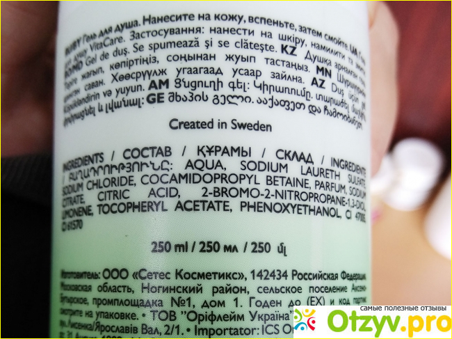 У меня довольно чувствительная кожа, поэтому я всегда беспокоюсь о том, какой состав у продуктов для душа. Несмотря на агрессивные компоненты в составе геля Oriflame VitaCare, моя кожа хорошо его переносила. При редком использовании гель не сушил кожу и не вызывал раздражений. Однако я заметила, что он не обладает особой мягкостью.