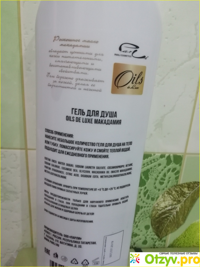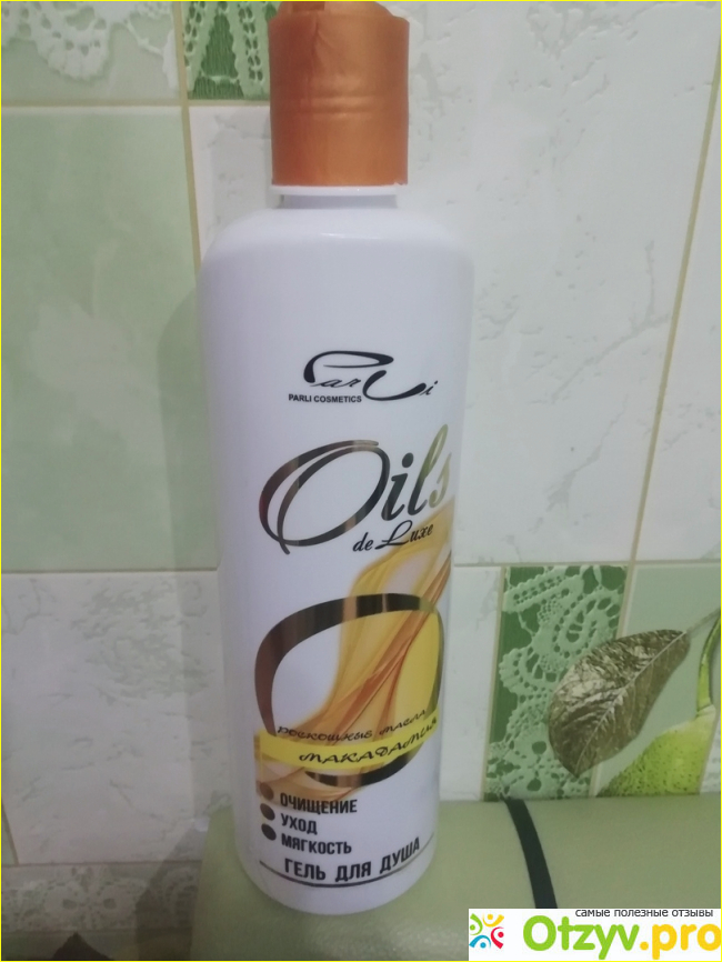 Гель для душа-моя слабость! С превеликим удовольствием пополняю свою коллекцию гелями разной ценовой категории из разных магазинов. Пару месяцев назад купила гель для душа Parli Oils de Luxe "Роскошные масла макадамия" в магазине "Фикс прайс", по цене 55 рублей. Привлекательный скромный дизайн просто манил-купи меня, купи.