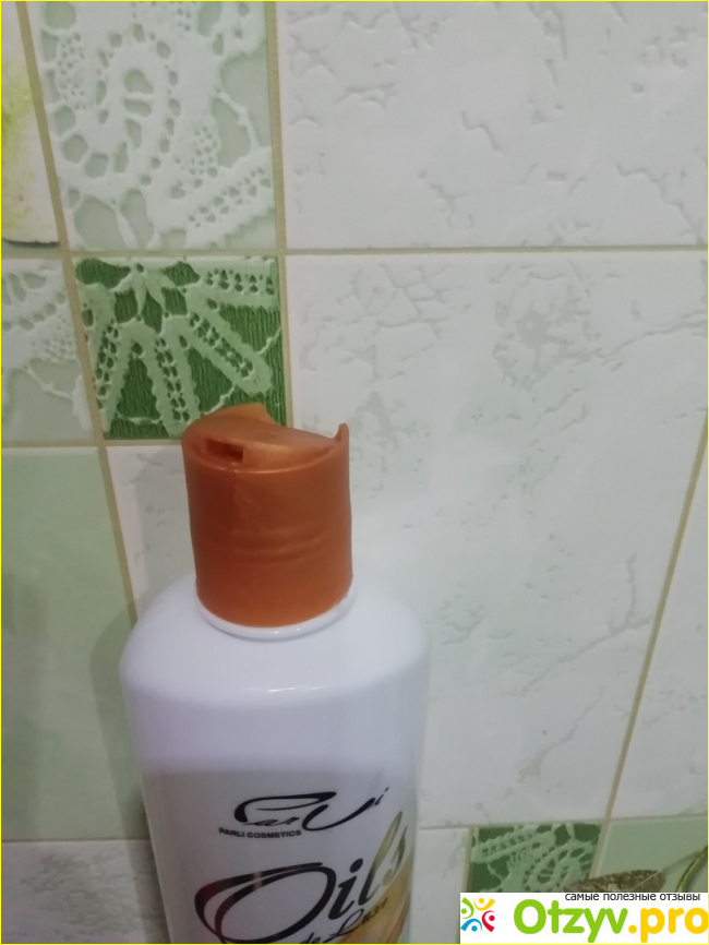 Смотрится скромно и дорого-мой любимый ход от производителя. Именно по такому дизайнерскому пути пошли производители Parli Oils de Luxe: белый цвет флакона в сочетании с золотистым оформлением. Черный шрифт на бело-золотистом фоне смотрится по деловому. Обещание, крупными буквами, от производителей-очищение, гладкость, сияние-сразу бросается в глазах на полках среди своих конкурентов.