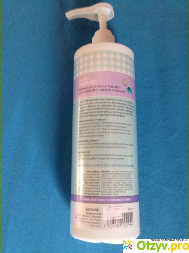 Состав указан на оборотной стороне бутылочки, средствоантиаллергенное, подходит для нежной кожи маленьких детей. После использования пробного флакона, стало понятно, что средство подходит всем членам семьии следующий объем я купила 1000 мл. Емкость снабжена удобным дозатором и выдает порцию небольшую, но вполне достаточную для намыливания всего тела.
