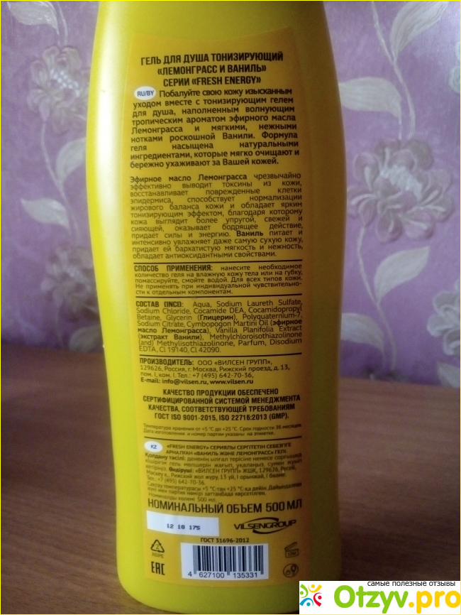 Предлагаю вашему вниманию отзыв о тонизирующем геле для душа "Лемограсс и ваниль" (серия "Fresh Energy)".