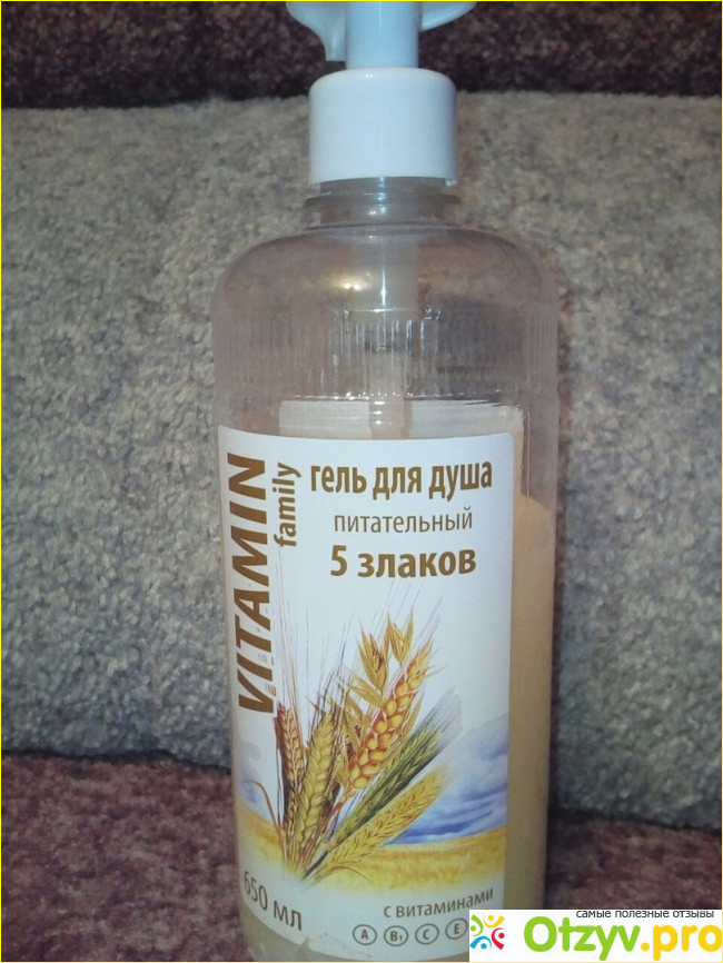 В Ашане какое-то время назад купила очень дешевый гель для душа за 50 рублей Vitamin Family 5 злаков. Объем бутылки целых 650 мл. Ну очень даже выгодная покупка. Не так ли??