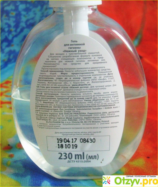 На этикетке можно найти информацию о том, что средство было протестировано под контролем гинекологов с участием женщин с чувствительной кожей.