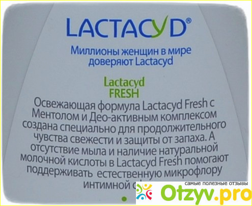 Наоборот, за счет содержания в составе молочной кислоты «Lactacyd Fresh» поддерживает нормальную микрофлору, и некоторые врачи его даже рекомендуют для предотвращения всяких неприятностей вроде дисбактериоза.