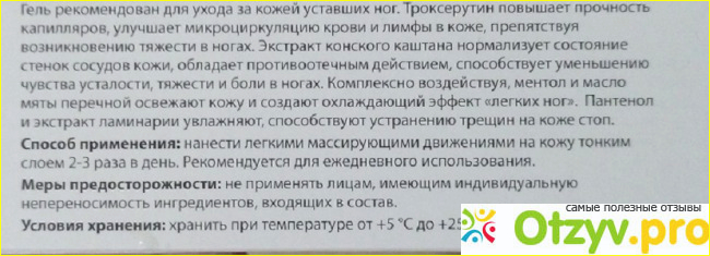 А благодаря троксерутину в составе геля, он благоприятно воздействует на вены. Если раньше у меня были звездочки на ногах, из за лопнувших сосудов, то сейчас их не осталось. Да и перестали ноги сильно уставать после долгой ходьбы. А раньше мало того, что ноги уставали, так еще и вены могли лопаться.