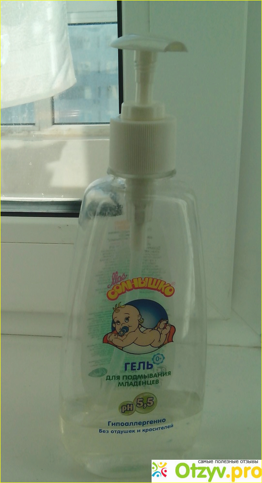 Начала искать на сайтах детских магазинов жидкое детское мыло, и в этом же разделе мне попадались и гели для мытья/подмывания младенцев, с рождения. Я начала искать отзывы, отзывы были хорошие. И я решила купить такой гель. Мое солнышко. Он был на удивление недорогой, другие средства стоили прямо в разы дороже. (Были еще несколько дешевых марок, но в основном все дорогие).