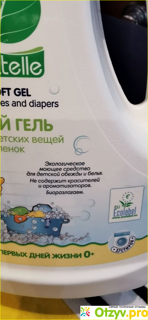 Я стираю вещи практически каждый день. Загрязнения, чаще всего это пятна от еды и следы от протекшего подгузника отстирывает без проблем, вещи чистые, без пятен, мягкие, приятно пахнущие свежестью. Конечно, если имеются какие-либо трудно выводимые пятна, то предварительно я старюсь их замачивать, все же этот гель «мягкий» и не предназначен для выведения сложных загрязнений.