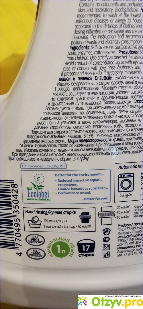 И вот наконец я нашла тот самый гель, который соответствует всем моим требованиям – это мягкий гель для стирки детских вещей и пеленок Dr Tuttelle.