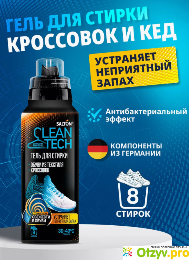 Доброго времени суток! Гель для стирки обуви из текстиля и кроссовок от Salton CleanTech покупаю уже давно, честно говоря, этот гель для меня просто спасение. У меня двое сыновей подростков, а как известно, в таком возрасте они любят полазить и побегать где попало. Бывает, приходят домой в такой обуви, на которую смотришь, и думаешь, что пора выкидывать, а нет.