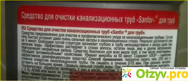 Итак, дождалась, когда вода в раковине наконец всё-таки уйдет. Следуя рекомендации, влила гель в сливное отверстие. Отмечу, что спасительной порцией в инструкции названо 250 грамм средства. Но мерной крышки-стаканчика нет, отмерять неудобно, так как 750-граммовая бутылка непрозрачная и сколько геля из нее вылилось, можно узнать лишь примерно. Всё бы ничего, мелкие недочеты прощаются, если бы действие Санфора соответствовало рекламе.