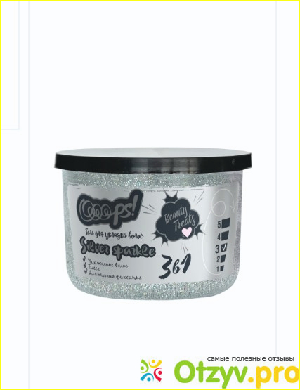 Блестки у геля не очень вычурные, поэтому гель подойдет для любой прически, не обязательно праздничной. Гель ухаживает за волосами. Не делает волосы каменными, наоборот, волосы мягкие, струящиеся и красивые.