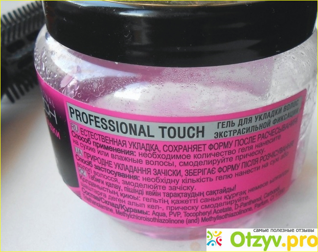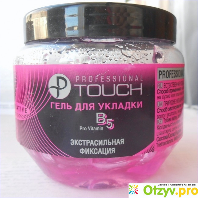 Когда закончилось мое проверенное средство для укладки волос, я пошла в магазин и увидела недорогой гель Professional Touch в баночке объемом 250 мл с многообещающими свойствами, описанными на этикетке. Вообще-то я предпочитаю муссы, но продавщица стала расхваливать этот гель. Она говорила, что сама им пользуется, и очень довольна.