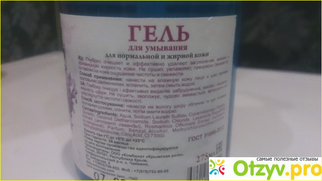 Далее по составу. Компонентов не так много, но среди них - сульфаты, хлориды и прочая вредная химия... Заявленные экстракты лаванды и розмарина находятся далеко не в начале списка. Помимо них есть еще глицерин. И все! Что-то бедновато для такой торговой марки. Ведь само название - Крымская роза ассоциируется с природой и ее богатством, а не с химическими заводами. Разочарована, минус.
