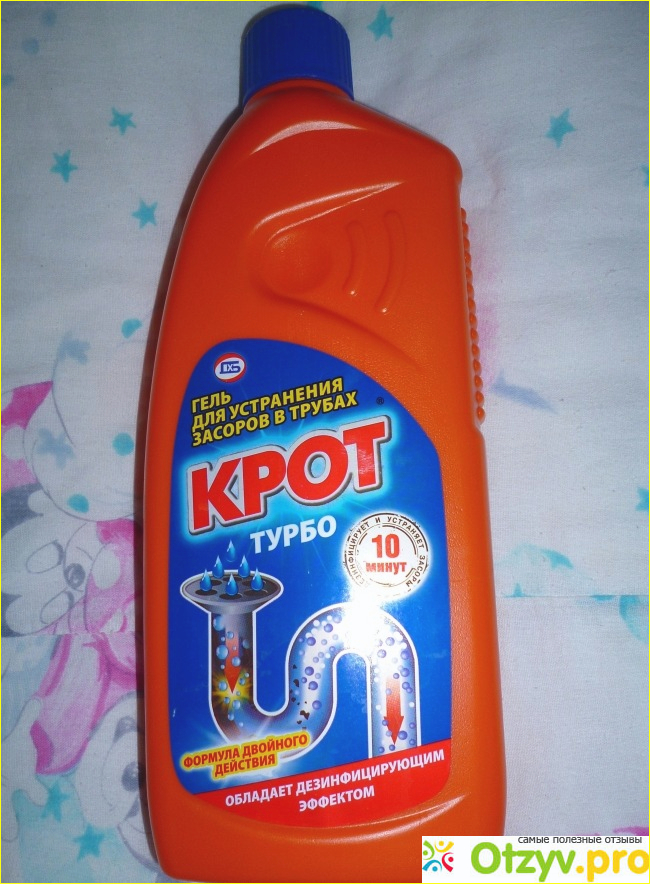 Гель этот прозрачный, жидковат по консистенции, запах имеет щелочной, но не сильный. Ну и хотелось перейти к эффекту, если честно, то он какой-то слабый, я потратила две бутылки, приходилось даже по два раза заливать средство в трубы, так как после одного раза я даже вообще никакого эффекта не увидела. Данное средство мне не очень понравилось, я позже напишу еще об одном "Кроте", который меня больше порадовал.