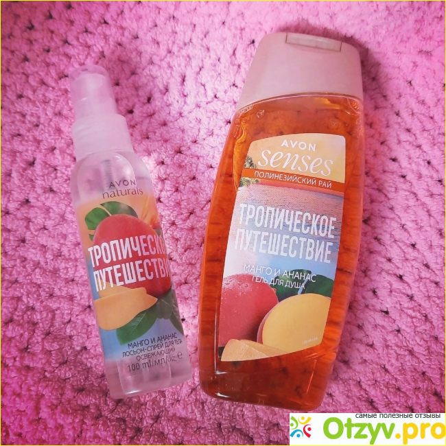 Два средства с абсолютно летними ароматами выпустила компания Avon. Линейка называется "Тропическое путешествие" и имеет аромат манго и ананаса.
