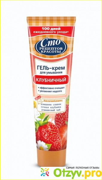 Им оказался Гель-крем для умывания Сто рецептов красоты Клубничный. Я к этой марке отношусь нормально, без восторга, не гонюсь за покупкой данной марки, но иногда приобретаю.