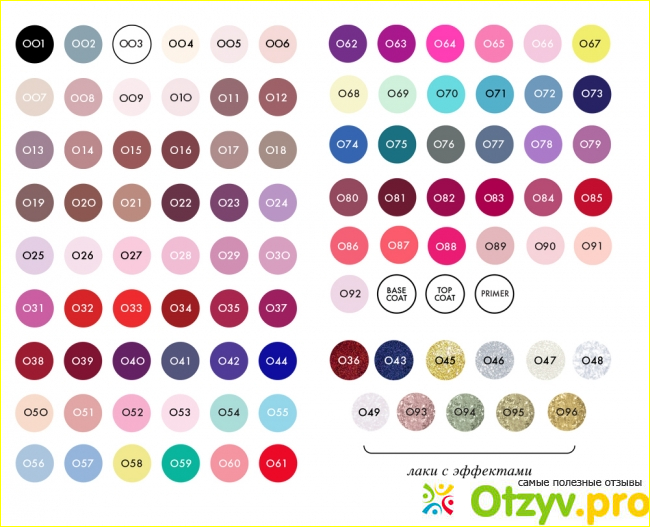 Палитра довольно богатая. Состоит из наиболее популярных цветов, позволяющих создать яркий или повседневный маникюр. Очень выгодно покупать лаки комплектами. есть миксы цветов или набор из цвета, топового и базового покрытий.