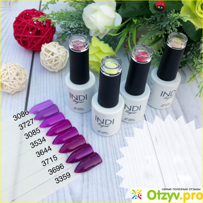 Я использовала лаки Инди для маникюра и педикюра. и могу сказать, что продукт действительно хорош. Мои цвета были насыщенными, яркими, и было важно чтобы они ложились равномерно и получалась хорошая картинка по итогу. Лак средней густоты, поэтому я стараюсь всегда очень тщательно отжимать кисть о горлышко флакона. Наносится иногда с проплешинами. Например, светло розовый оттенок, но, если использовать базу камуфляж, то все будет значительно лучше.